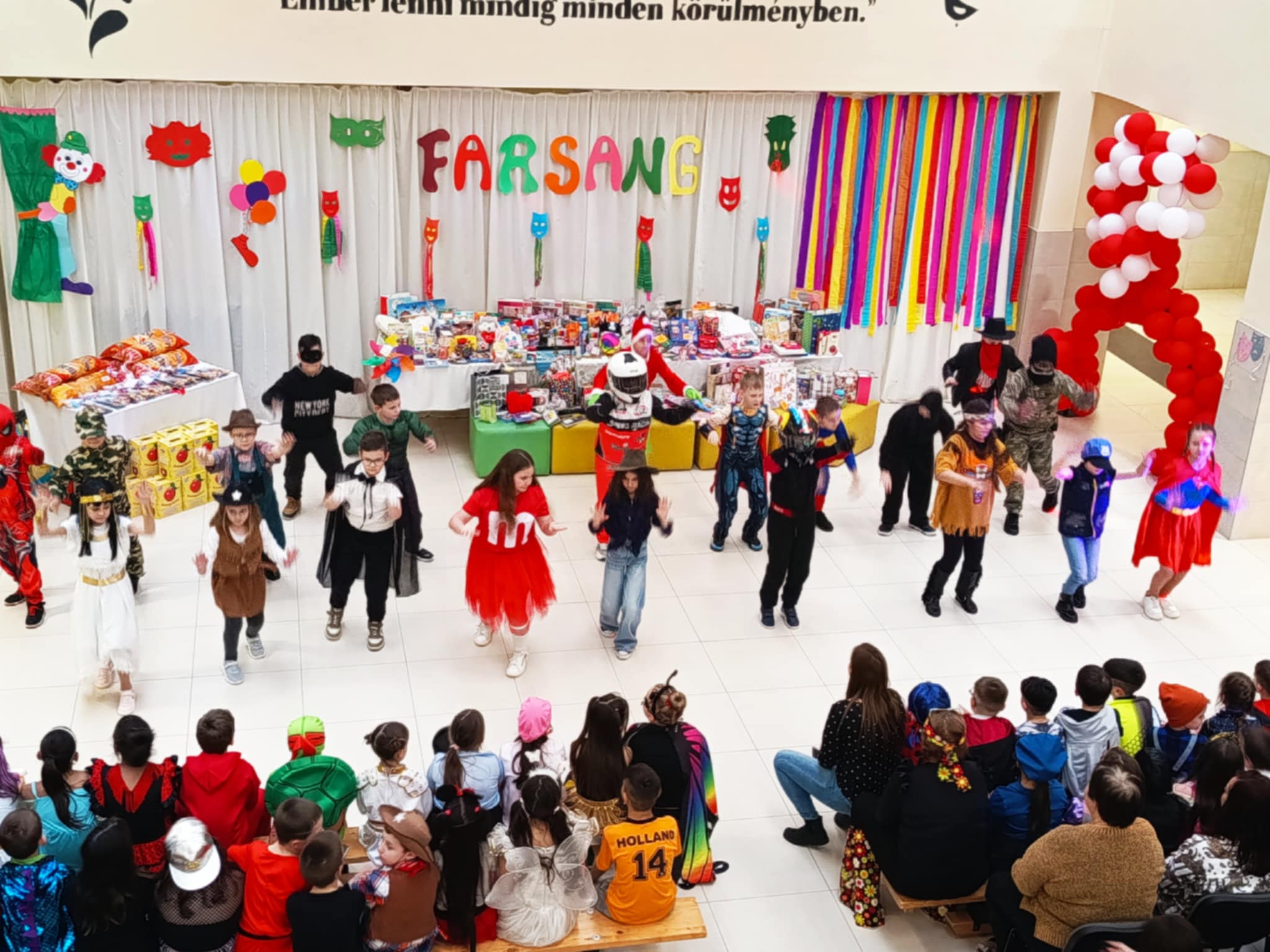 A programon minden osztály részt vett, és nagy lelkesedéssel készült saját táncos produkcióik bemutatására. A gyerekek ötletesebbnél ötletesebb jelmezekbe bújtak: láthattunk mesefigurákat, szuperhősöket, varázslókat, boszorkányokat, kreatív, egyedi jelmezmegoldásokat is. A közönség minden fellépőt nagy tapssal jutalmazott.
