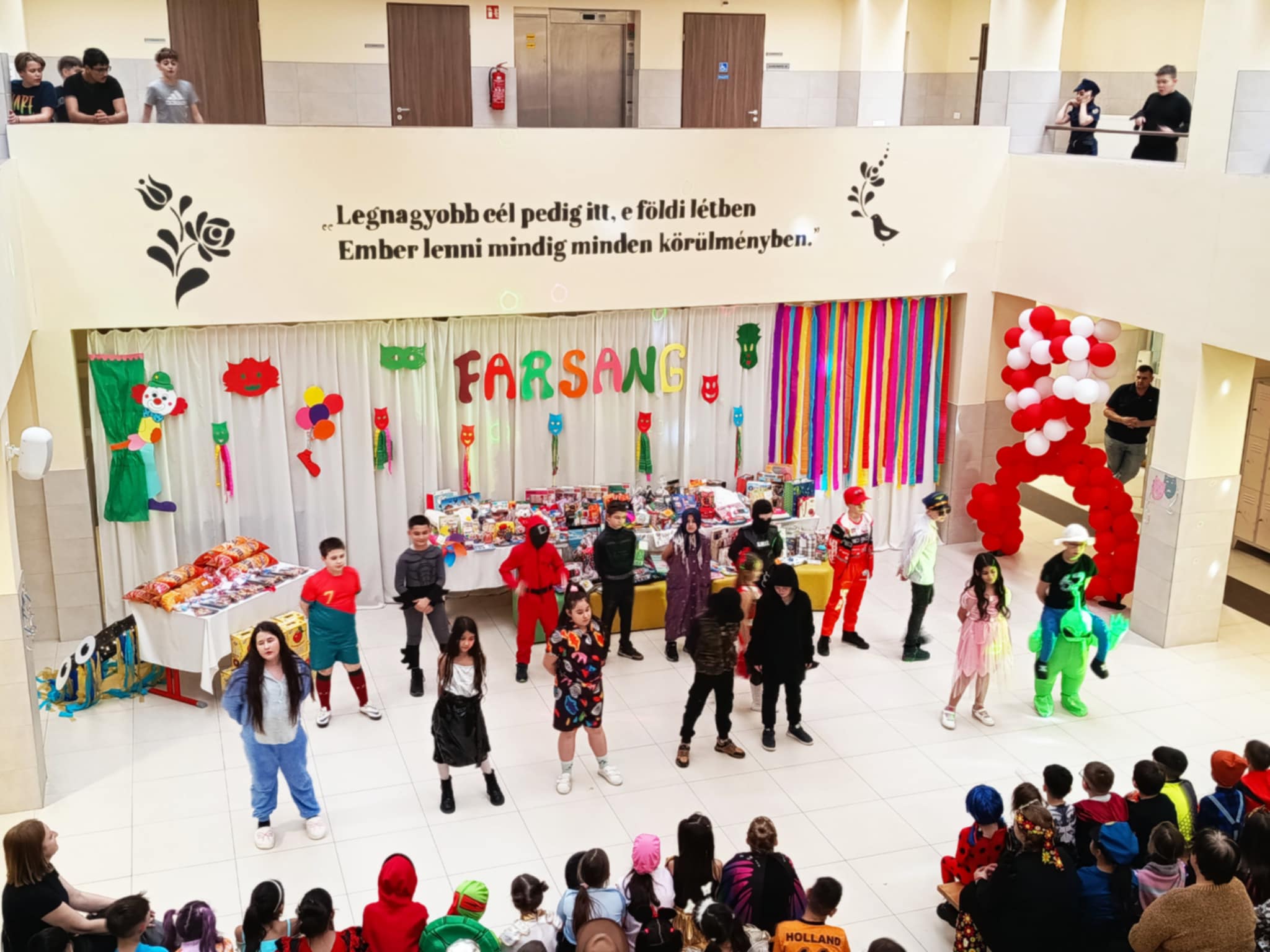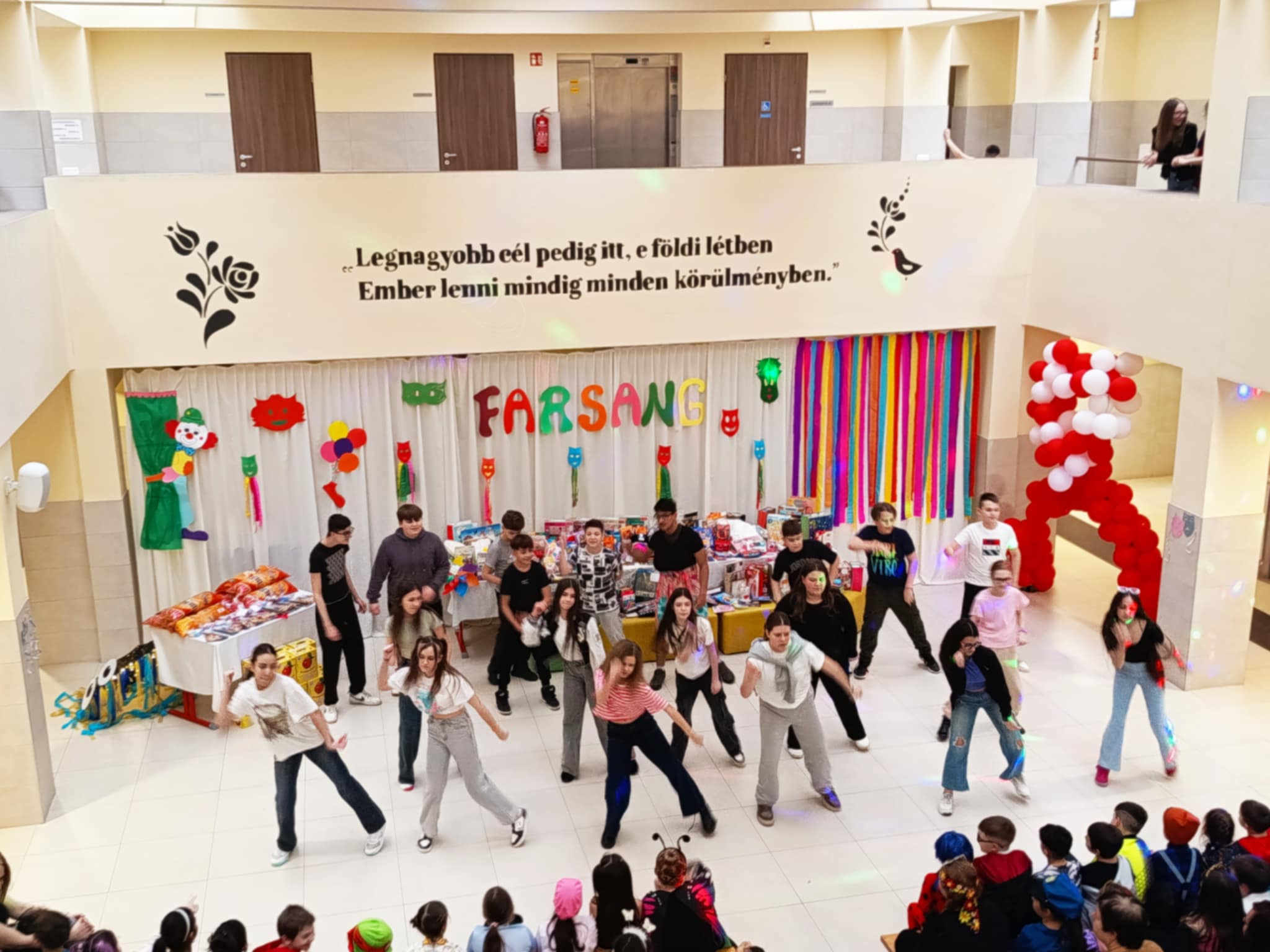 A rendezvényünk nemcsak a szórakozásról szólt, hanem a közösségépítésről is. A közös készülődés, a próbák és az együtt átélt élmények tovább erősítették az osztályközösségeket. A műsorokat követően a mulatság vidám hangulatú discóval zárult, ahol diákjaink felszabadultan táncolhattak együtt. A jókedv és a nevetés garantált volt, méltó lezárásaként ennek a tartalmas és élményekben gazdag napnak.