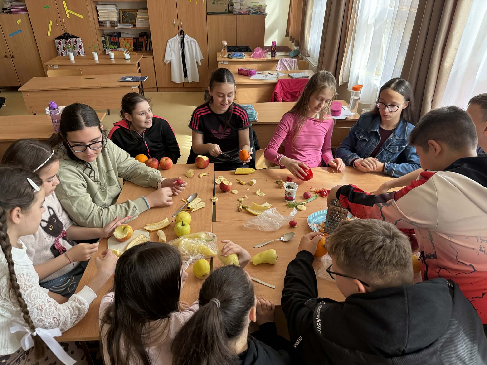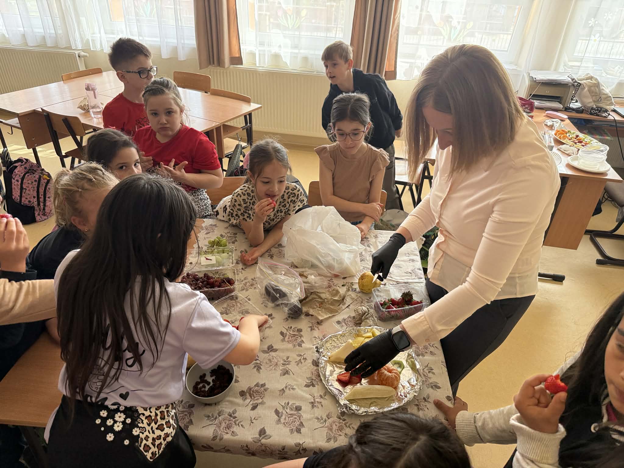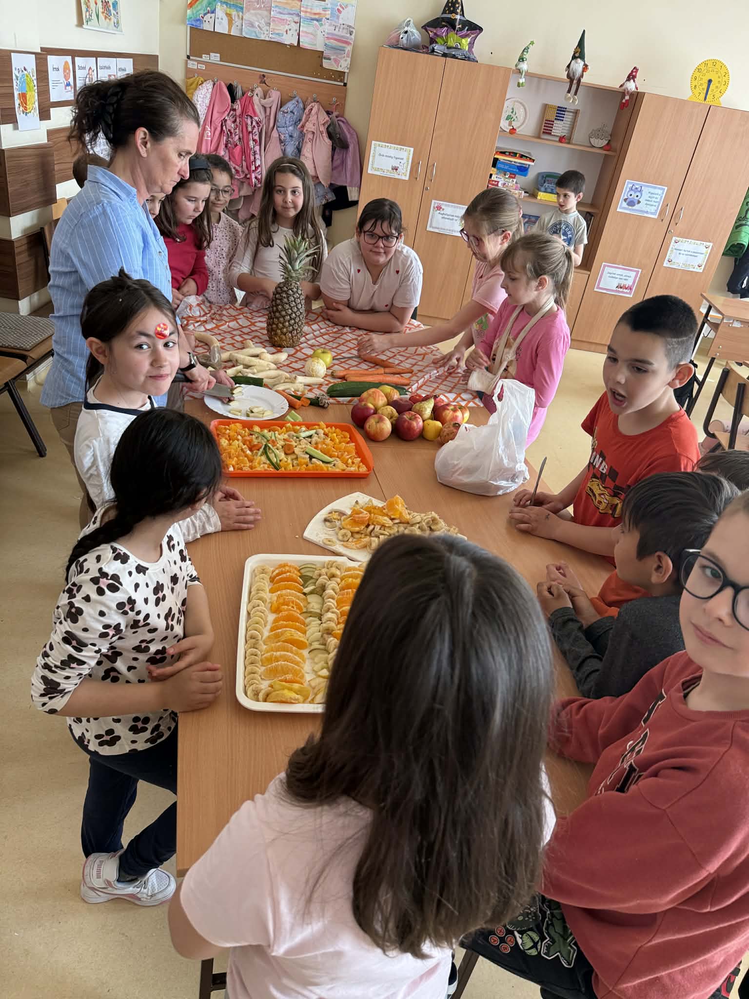 Vidám egészségnapot tartottunk iskolánkban! A gyerekek különféle gyümölcsökből és zöldségekből készítettek ötletes, színes tálakat.