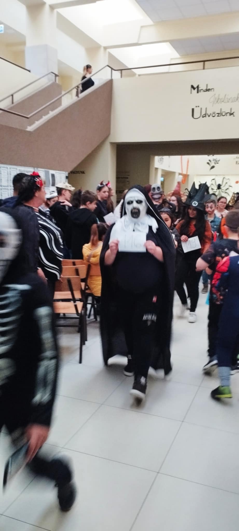 Minden osztály közösen, alkotókedvvel készítette el a hagyományos, mutatós töklápásokat és dekoratív plakátokat, amelyek iskolánk auláját díszítették. A délután egyik legizgalmasabb programja a gyerekek, szülők és pedagógusok színes, ötletes jelmezfelvonulása volt. A legkreatívabb öltözékeket, töklámpásokat és plakátokat a közönség szavazatai alapján díjaztuk.