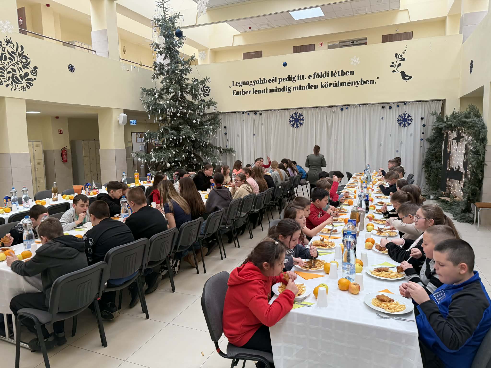 2025.12.19-én ünnepi hangulatban telt az ebédidő: karácsonyi ebéddel kedveskedtünk tanulóinknak és dolgozóinknak.