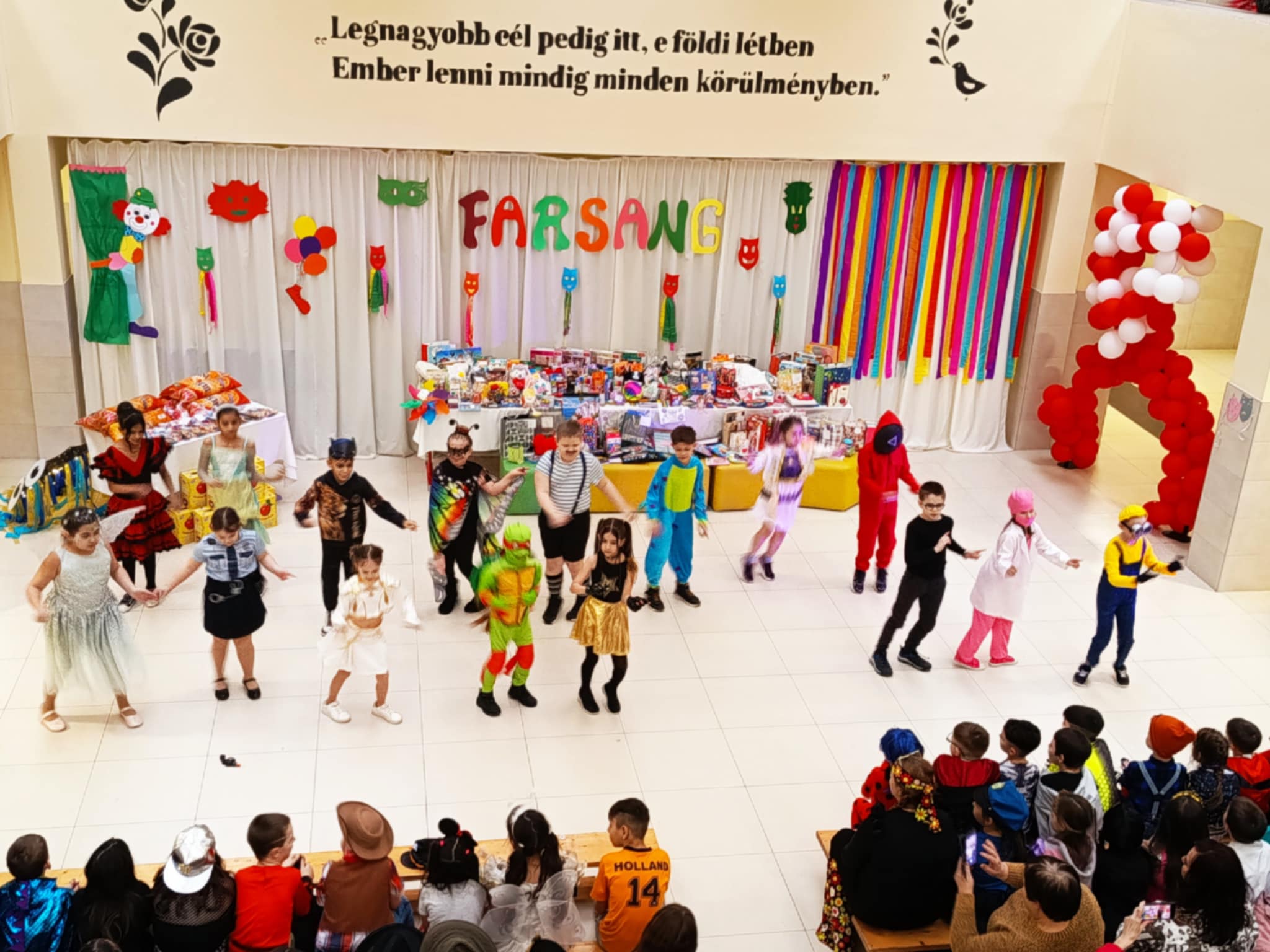 A rendezvényünk nemcsak a szórakozásról szólt, hanem a közösségépítésről is. A közös készülődés, a próbák és az együtt átélt élmények tovább erősítették az osztályközösségeket. A műsorokat követően a mulatság vidám hangulatú discóval zárult, ahol diákjaink felszabadultan táncolhattak együtt. A jókedv és a nevetés garantált volt, méltó lezárásaként ennek a tartalmas és élményekben gazdag napnak.