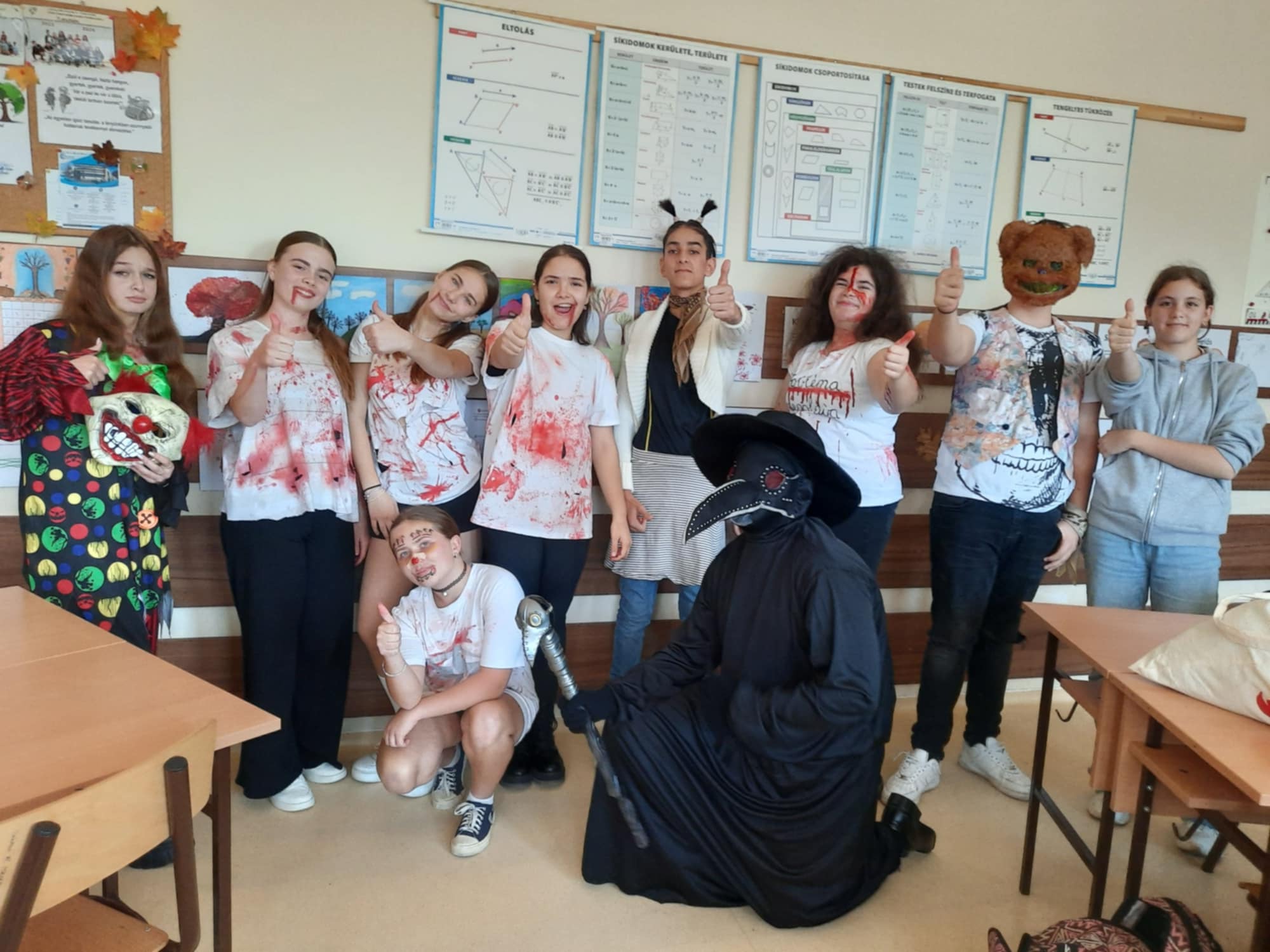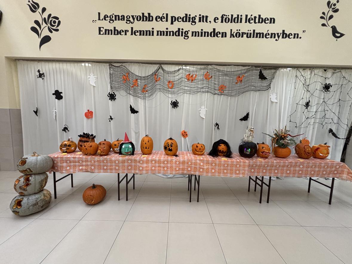 Hagyományainkhoz hűen játékos vetélkedőt, jelmez-, plakátkészítő és tökfaragó versenyt rendeztünk. Zenés, táncos mulatsággal zárult ez a vidám délután.