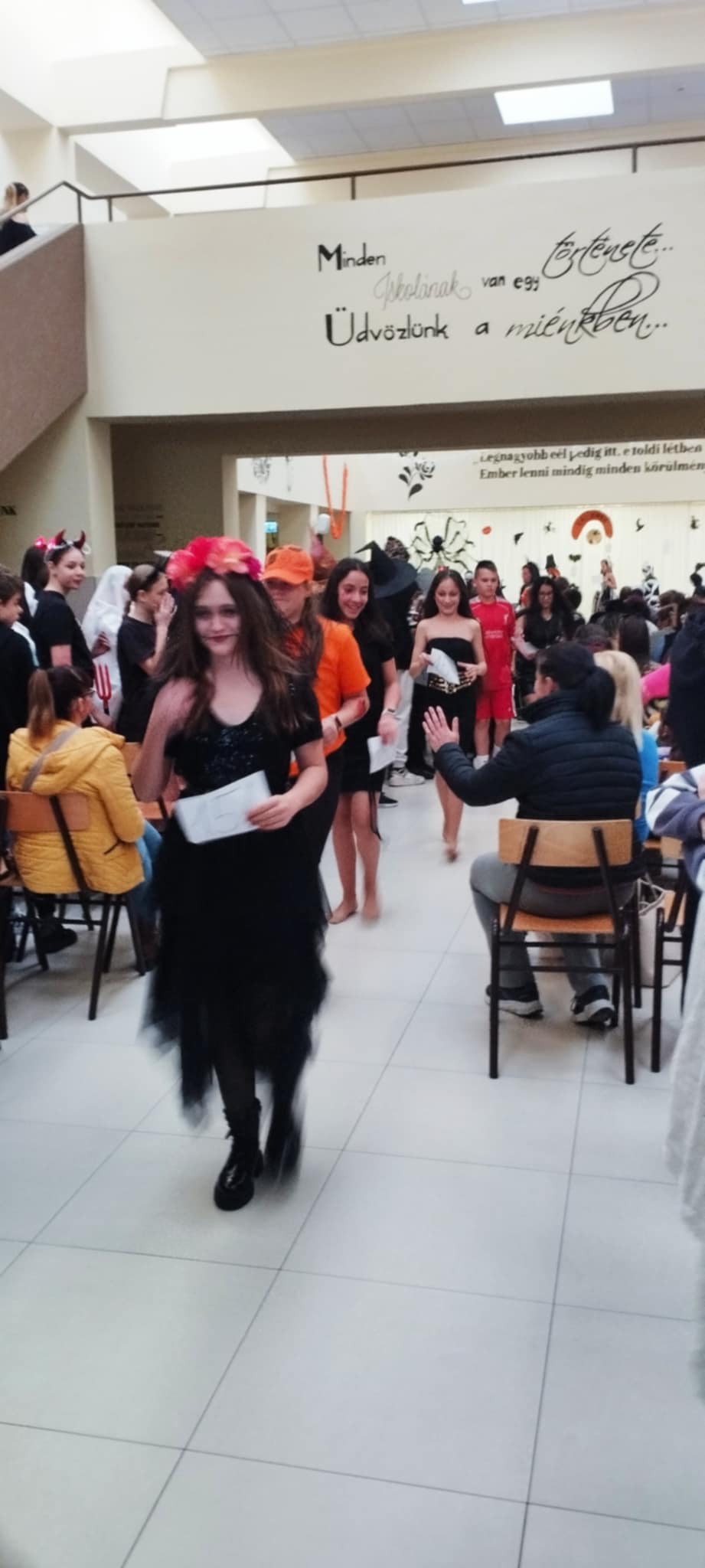 Minden osztály közösen, alkotókedvvel készítette el a hagyományos, mutatós töklápásokat és dekoratív plakátokat, amelyek iskolánk auláját díszítették. A délután egyik legizgalmasabb programja a gyerekek, szülők és pedagógusok színes, ötletes jelmezfelvonulása volt. A legkreatívabb öltözékeket, töklámpásokat és plakátokat a közönség szavazatai alapján díjaztuk.