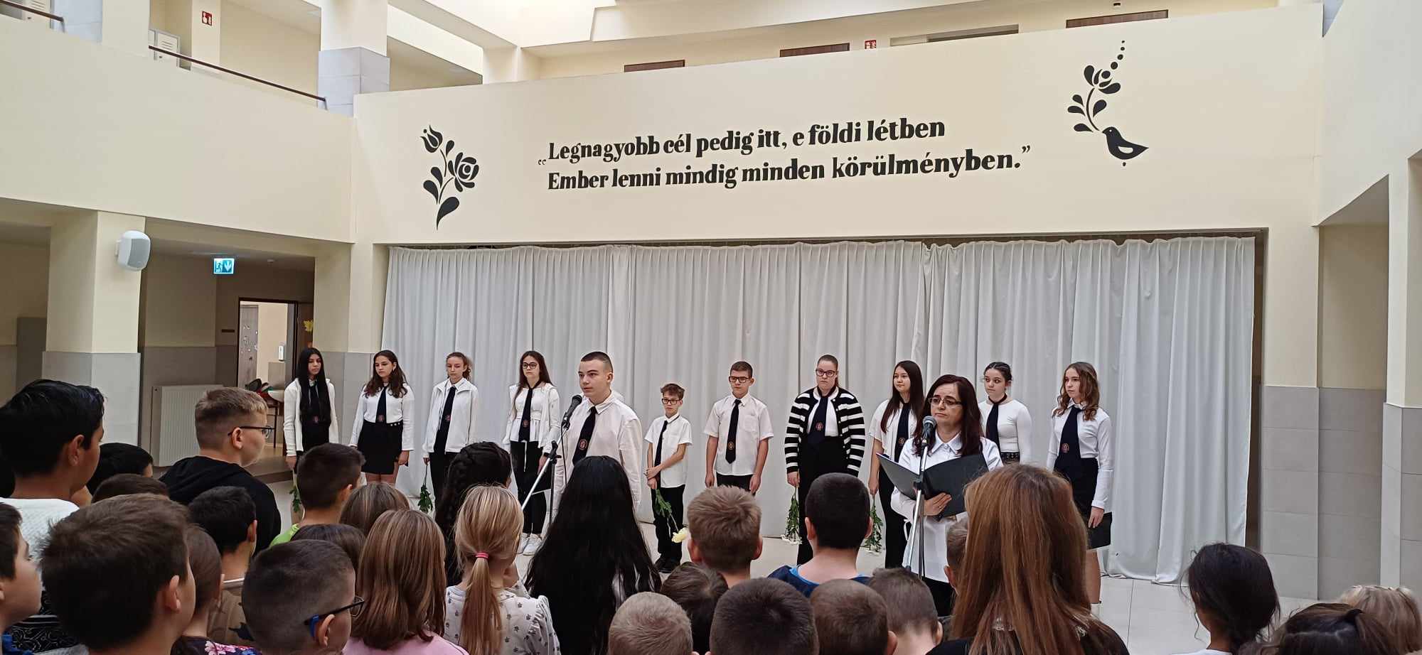 Iskolánk 7. osztályos tanulóinak és az őket felkészítő pedagógusnak, Terdikné Nagy Éva tanárnőnek köszönjük a megemlékező műsort.