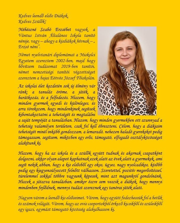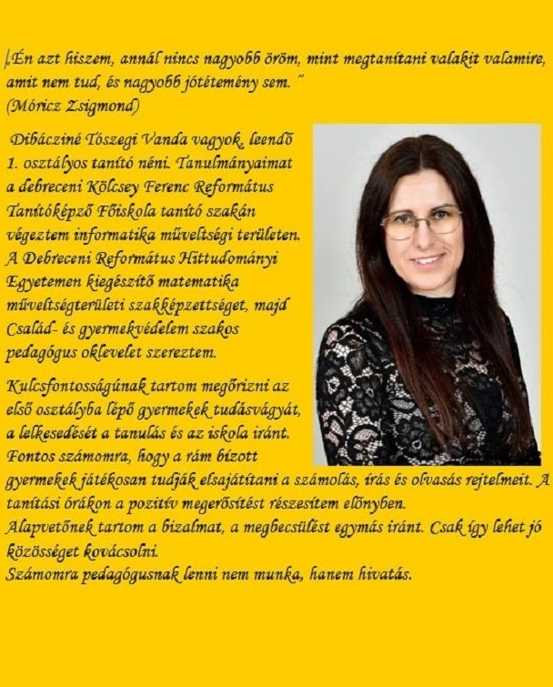Iskolánk nagy örömmel mutatja be azokat a pedagógusokat, akik a 2025/2026-os tanévben a legkisebbeket, a leendő első osztályosokat fogják szeretettel, türelemmel és gondoskodással kísérni az iskolai élet első lépésein.