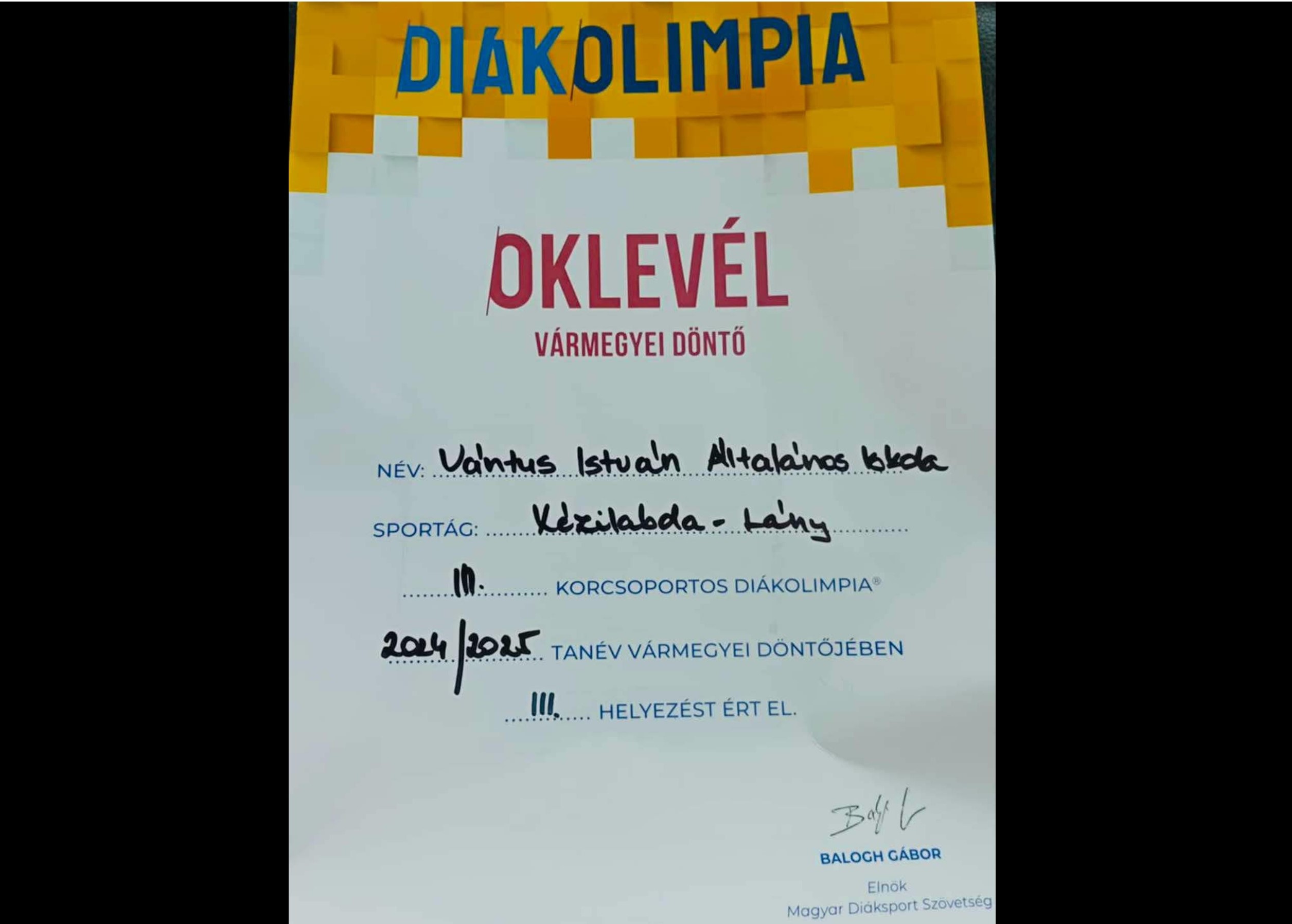 Hatalmas gratuláció iskolánk kézilabdacsapatának, akik a Diákolimpia Vármegyei döntőjében a 3. helyet szerezték meg! Büszkék vagyunk rátok!