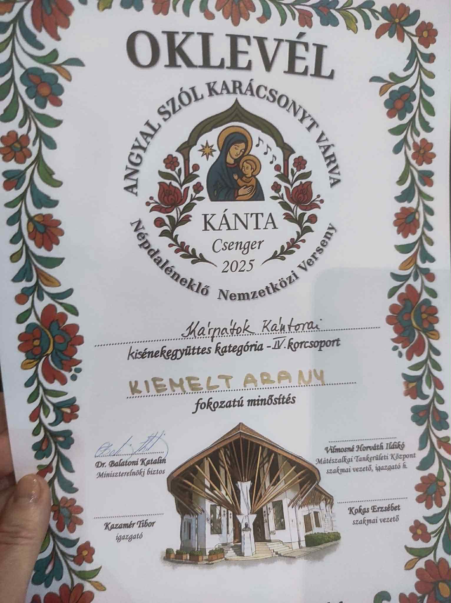 A Nemzetközi Kánta népdaléneklő versenyen Csenger városában összesen 4 csapat indult iskolánkból. A gyönyörű szereplés eredményeként 1 ezüst, 2 arany, valamint 1 kiemelt arany fokozat született. Nagyon büszkék vagyunk a gyerekek teljesítményére!🎶🏅