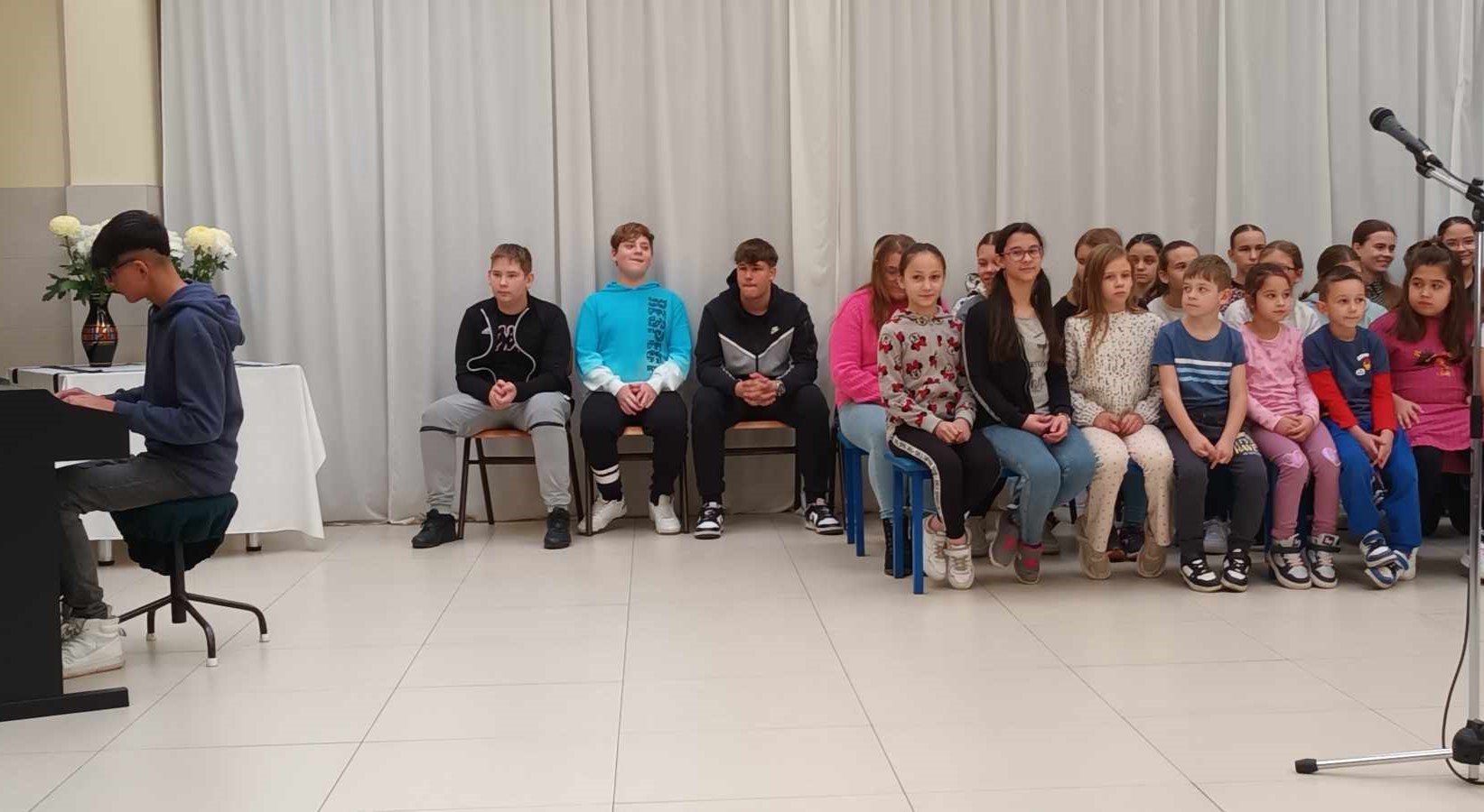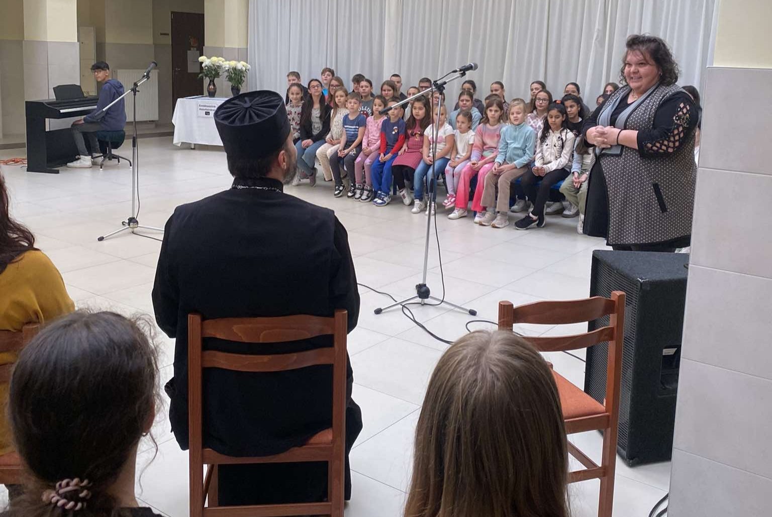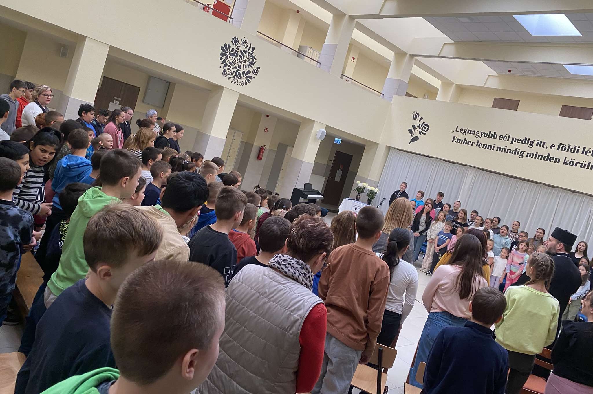 A gyermekek egy szájjal és egy szívvel zúgták Jézus életem, erőm ,békém kezdetű egyházi éneket Püspök Atya fogadására.