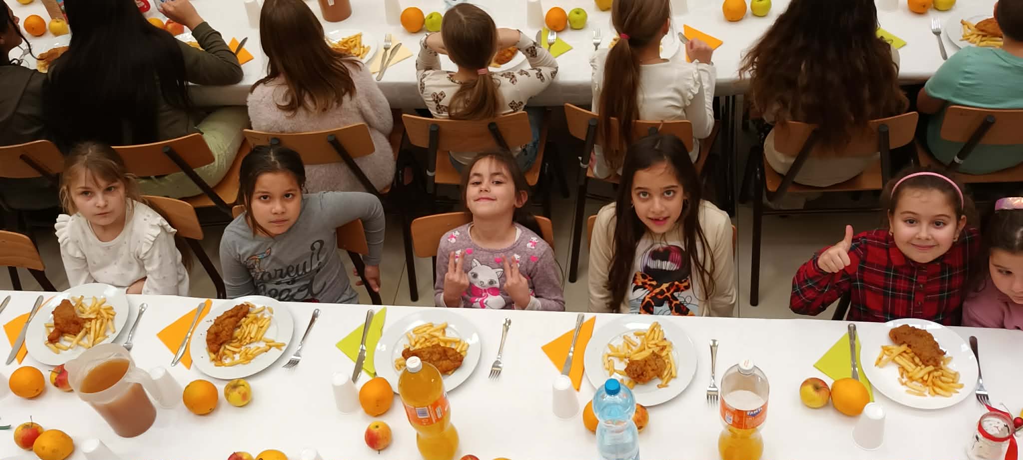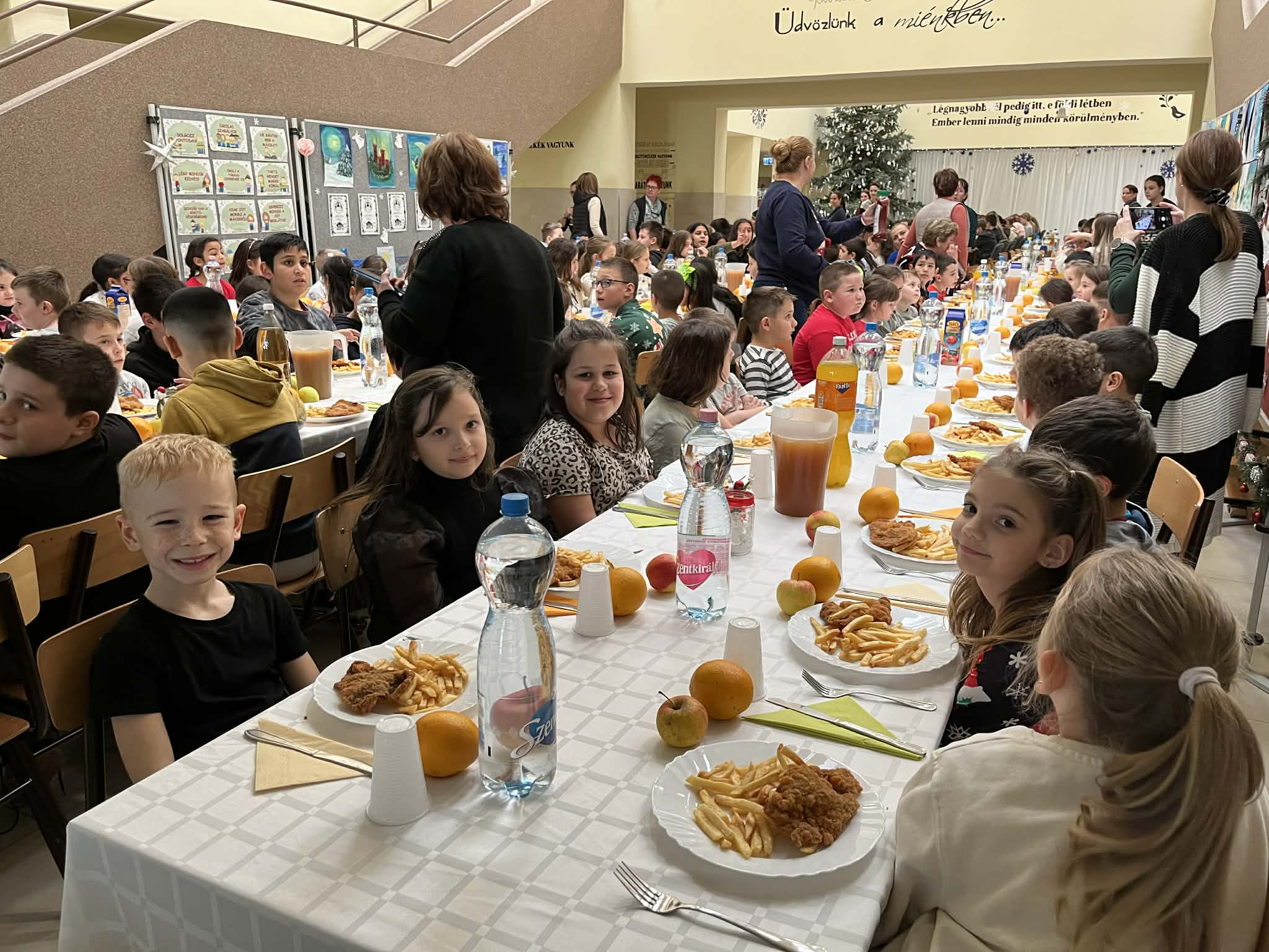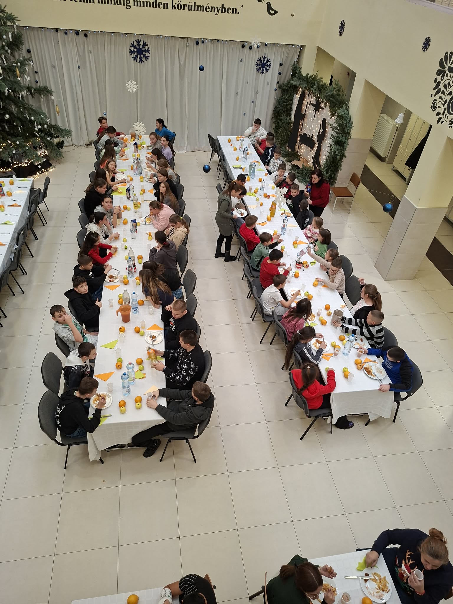 2025.12.19-én ünnepi hangulatban telt az ebédidő: karácsonyi ebéddel kedveskedtünk tanulóinknak és dolgozóinknak.