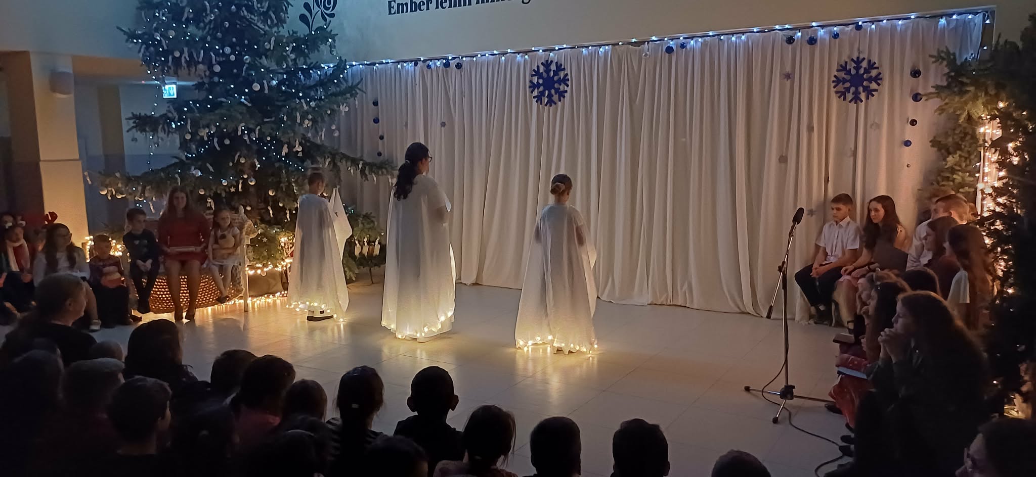 Egy lélekemelő, szívhez szóló karácsonyi est részesei lehettünk, amely egy kislány meséjén keresztül tárta elénk a karácsony igazi szépségét. A történet fonalát zene, tánc és ének szőtte tovább, varázslatos egységbe rendezve az érzelmeket, a hitet és az ünnep csendes csodáját. Minden pillanat az összetartozásról, a szeretetről és a reményről szólt.