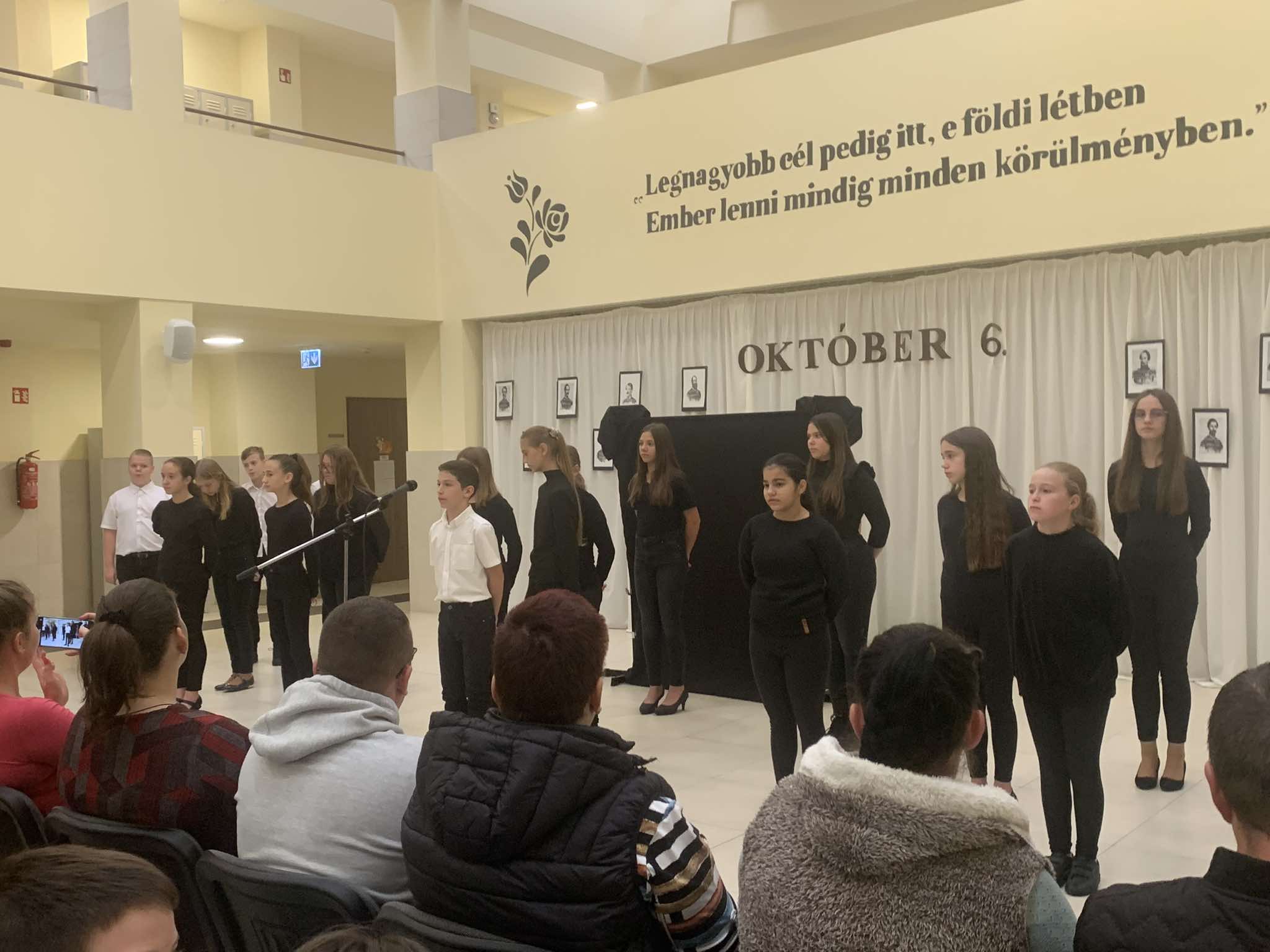 Iskolánk 6. évfolyamos tanulói műsorával emlékeztünk meg az 1849. október 6-án Aradon kivégzett hősi halottainkról.