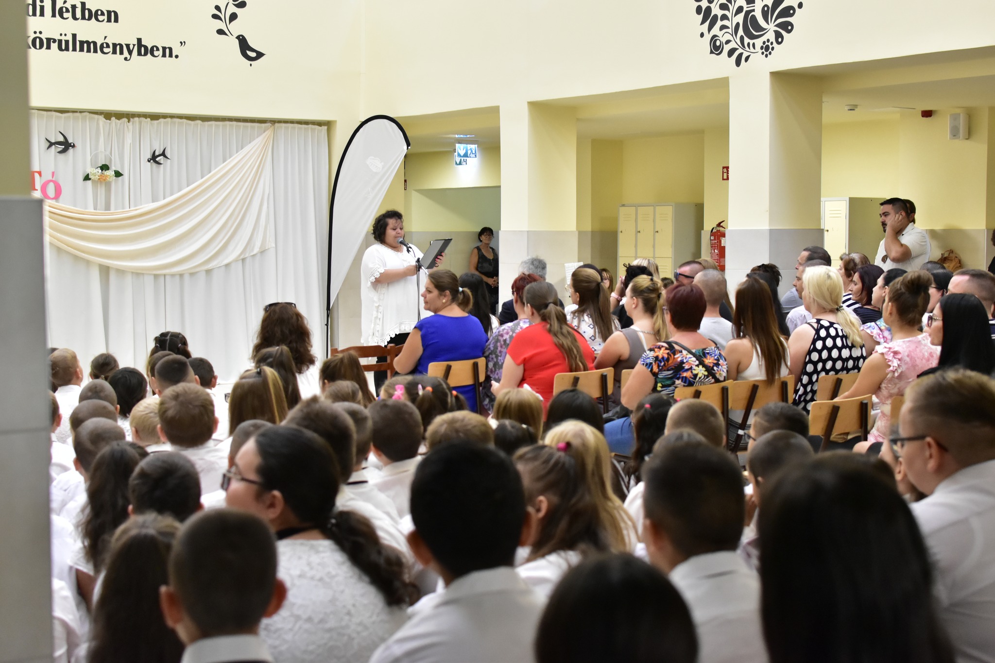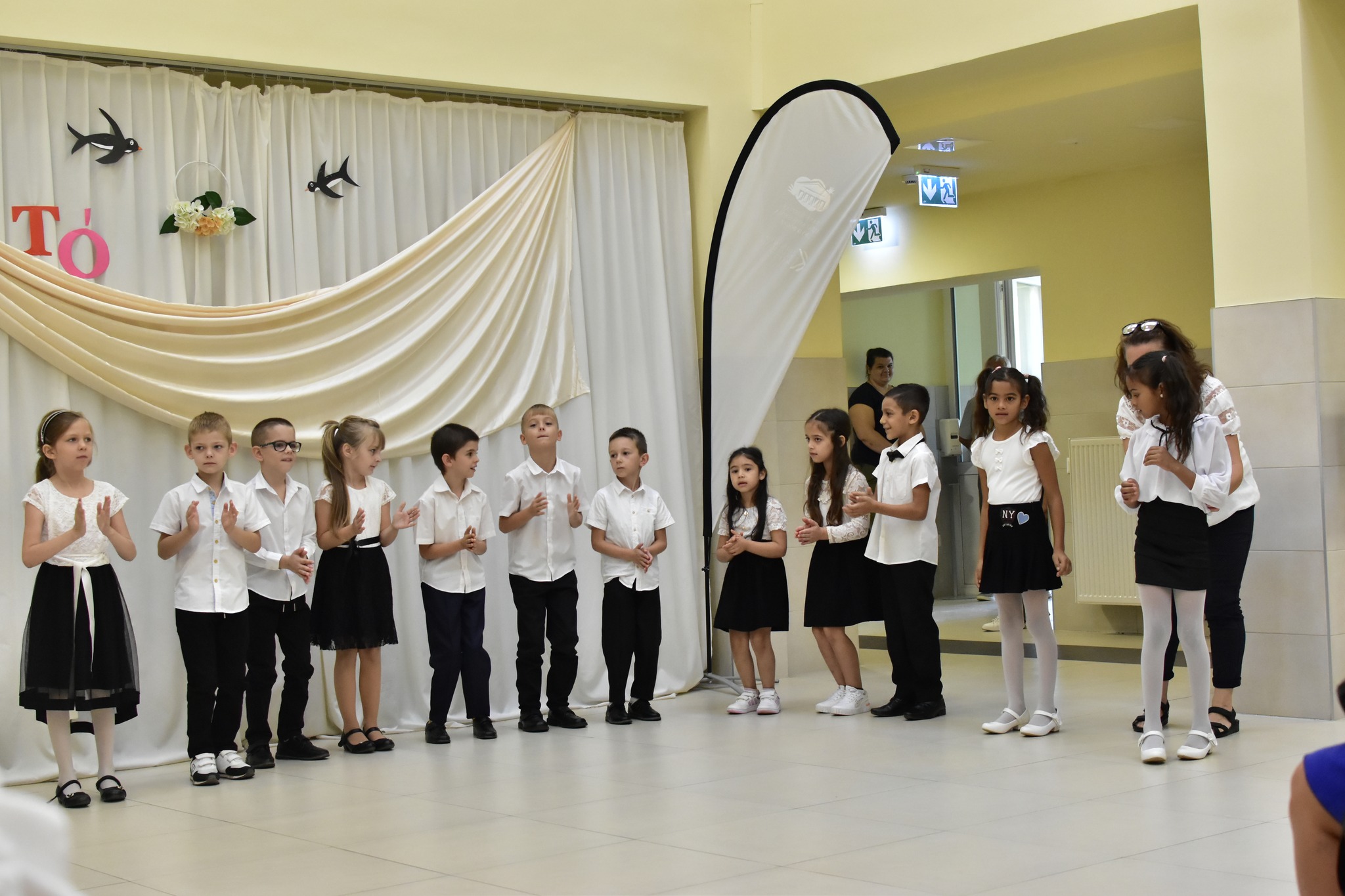 Ebből az alkalomból iskolánk elsősei és ötödikesei, Bákonyi Eliza, Dibáczi Kincső Csaga és Németh Kamilla Hanna készültek egy rövid zenés, táncos műsorral. Ezután Száva Erika, intézményvezető köszöntötte a megjelenteket, az elkövetkező tanévre „útravalóval” látta el iskolánk tanulóit.
