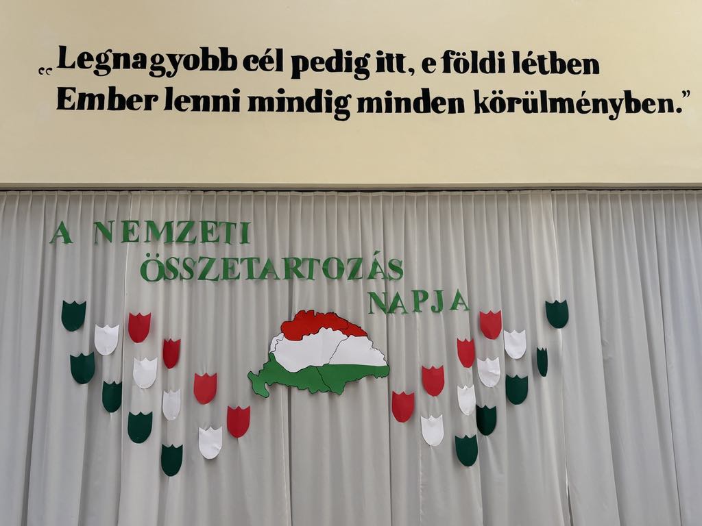 2025. június 5-én ünnepség keretében emlékeztünk meg a trianoni békediktátum évfordulójáról. Tanulóink dalokkal és lélekemelő gondolatokkal idézték meg a magyarság összetartozásának erejét – határokon innen és túl.